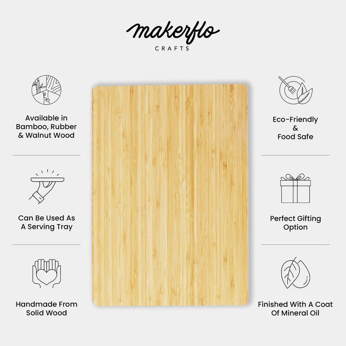 Add a personal touch to your kitchen or gift with our eco-friendly, laser-engraved bamboo cutting board. Perfect for weddings, housewarmings, corporate gifts, and special occasions.