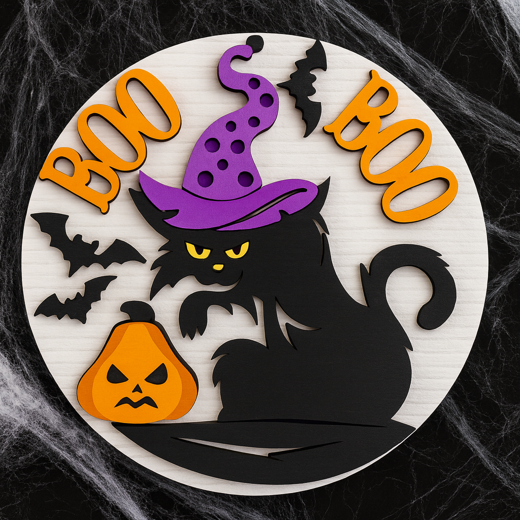 👻 Make your home the spookiest (and cutest) on the block with this Boo! Black Cat Halloween Door Sign—a must-have for cat lovers and Halloween fans alike!
