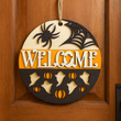 Add spooky charm to your home this Halloween with our layered wooden Halloween Welcome Sign. This handcrafted round sign features a bold โWELCOMEโ across the center, surrounded by festive Halloween accents โ a spider with its web, playful ghosts, and mini pumpkins. Perfect for front doors, porches, or interior walls, it sets the mood for trick-or-treaters and guests alike!