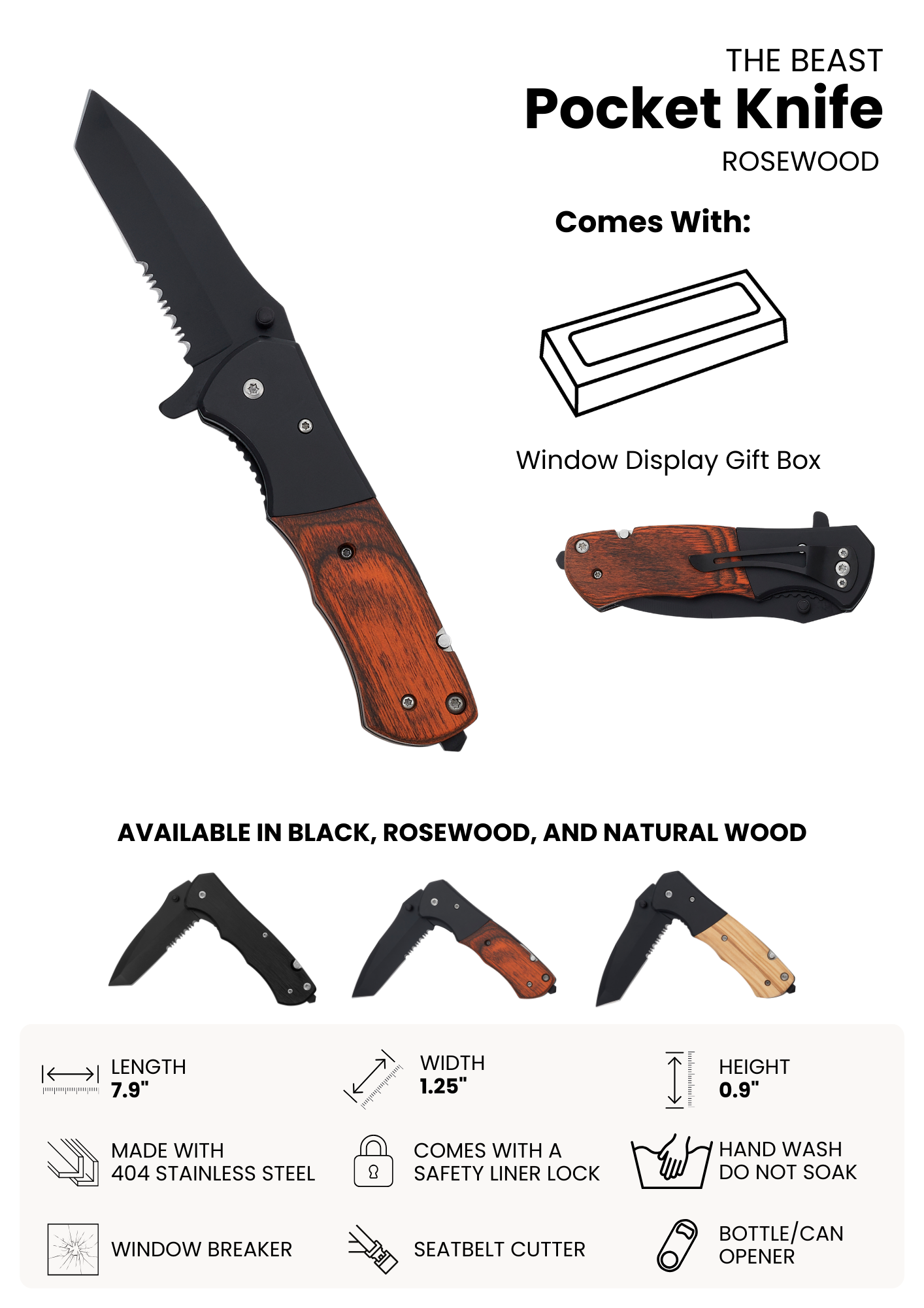 Rugged. Reliable. Personal. The “Beast” Pocket Knife is the ultimate everyday carry tool—now available with custom laser engraving for a personal touch. Whether you're commemorating a special occasion or promoting your brand, this multifunctional knife delivers performance and style.